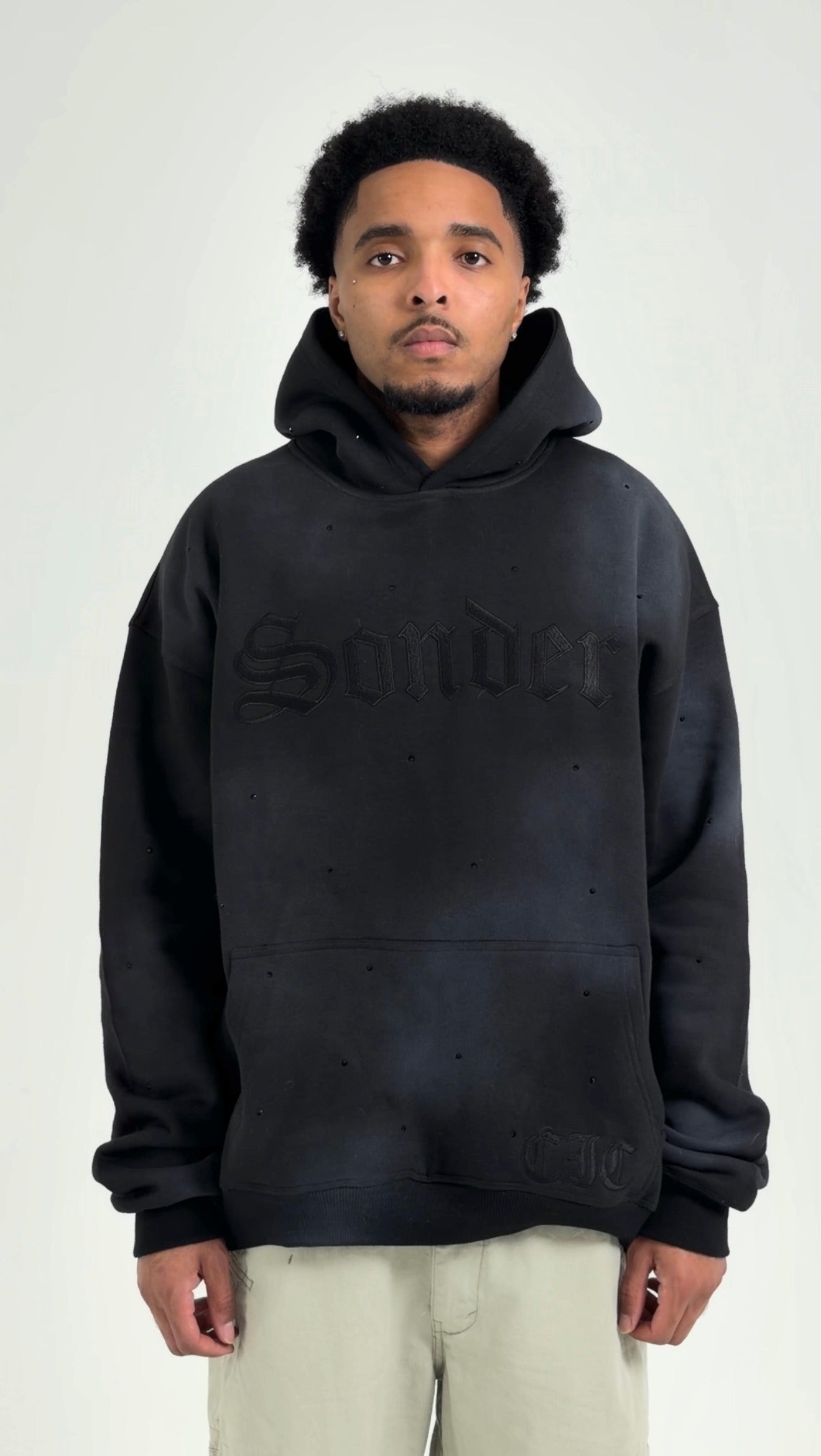 "Sonder" Rhinestone Hoodie in Washed Black