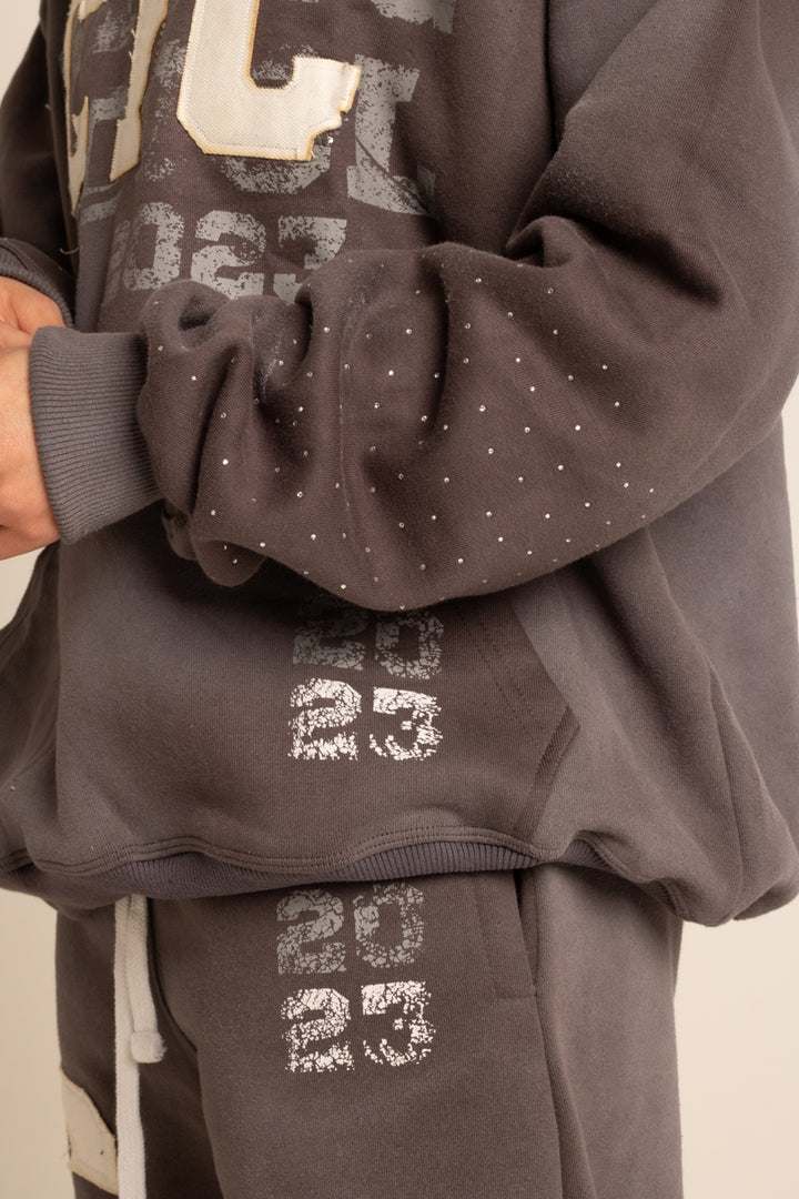 Print: Rhinestone designs, Distress Embroidery, Screen Print
